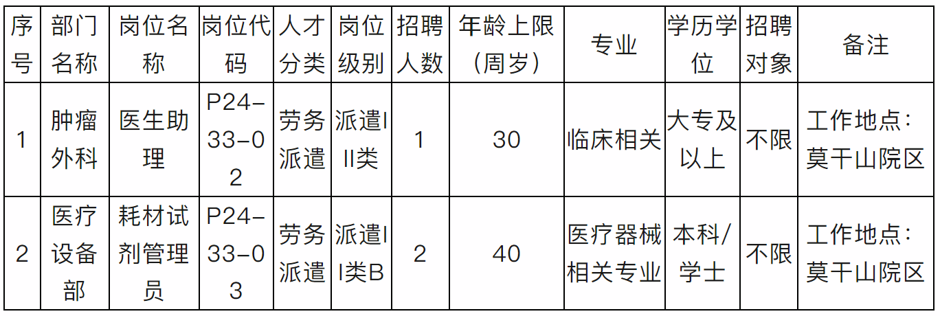 浙江大学医学院附属儿童医院2024年第十九次劳务派遣招聘计划(莫干山院区)