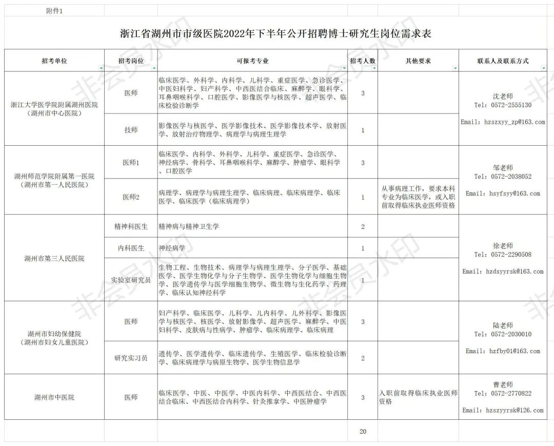 根据《南太湖医疗卫生领军的人才引进实施办法》等有关规定,结合湖州市市级医院实际,现将2022年下半年公开招聘博士研究生的有关事项公告如下: