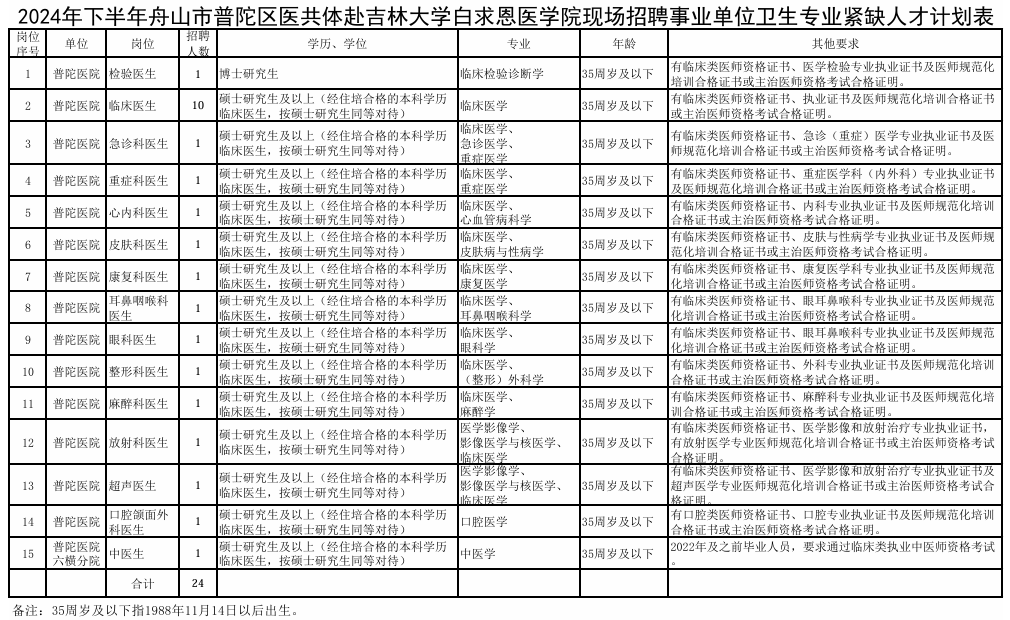 (1)《2024年下半年舟山市普陀区医共体赴吉林大学白求恩医学院现场招聘事业单位卫生专业紧缺人才报名表》(见附件2)。