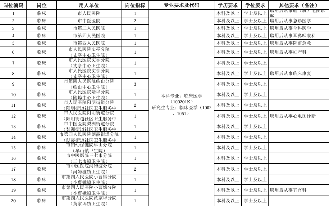 6.报考基层卫生院(社区卫生服务中心)临床、中医岗位(含已备注从事方向的岗位)的人员,招聘录用后根据所在单位工作需求,从事本院或下属村卫生室(社区卫生服务站)医疗服务工作。
