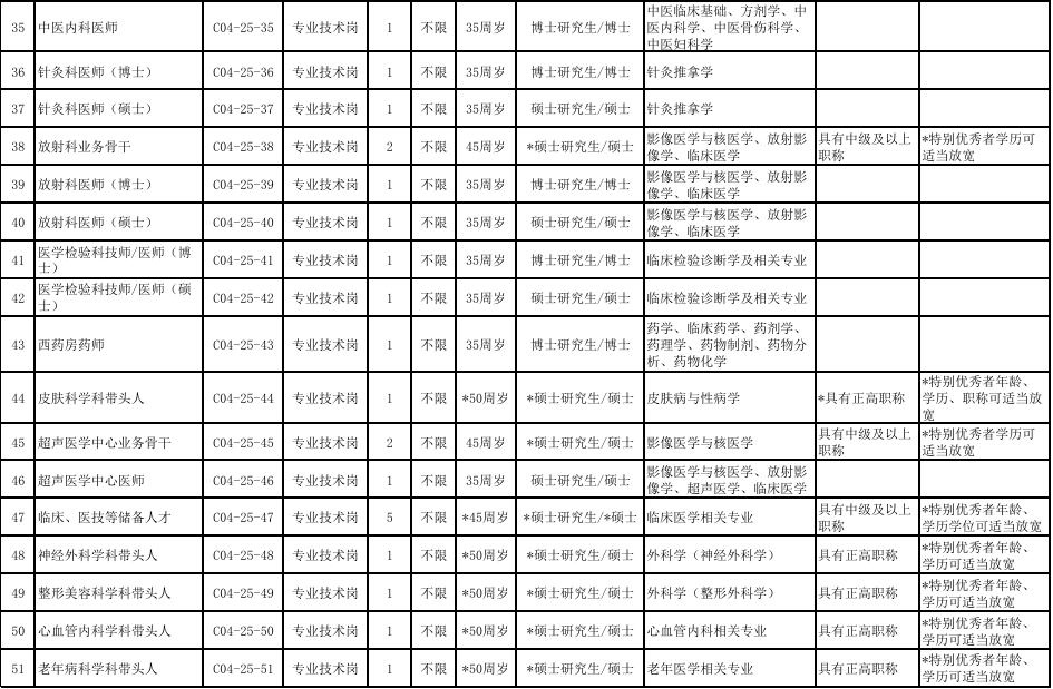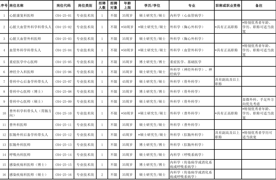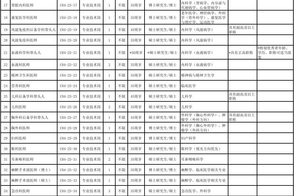 业技术岗位招聘目录,在2025年度内继续招聘。