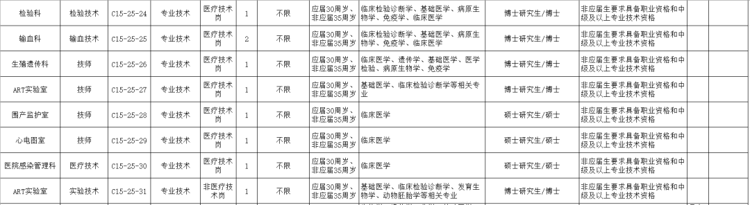 为方便资格审查,招聘岗位表中的年龄条件,如“年龄上限35周岁”,专指1990年1月1日以后出生者,其它依此类推,不特指确切年龄。对应届毕业生的年龄要求仅作参考。具有副高及以上专业技术资格的人员年龄可适当放宽。