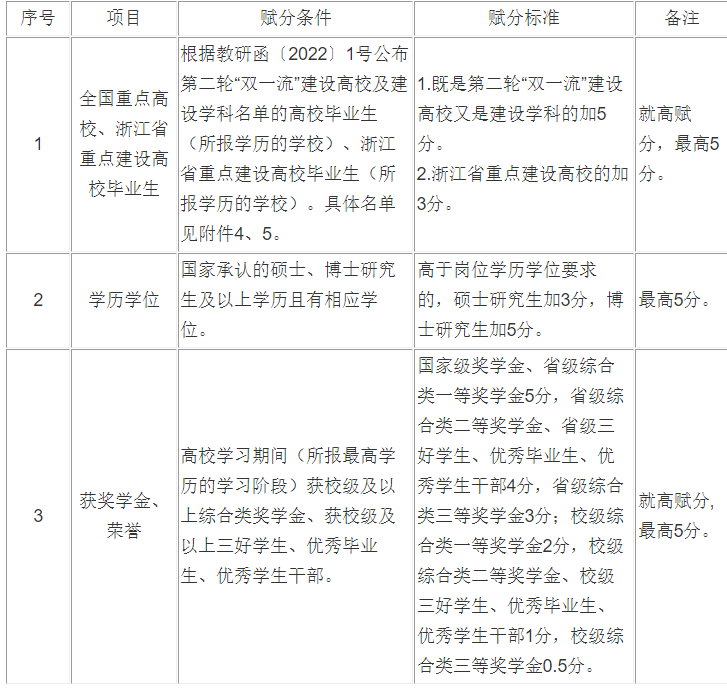(3)赋分:为引进一批优势医学院校优秀毕业生,实行考生赋分制,具体赋分办法见下表,三项累计不超过10分,分值纳入总成绩。