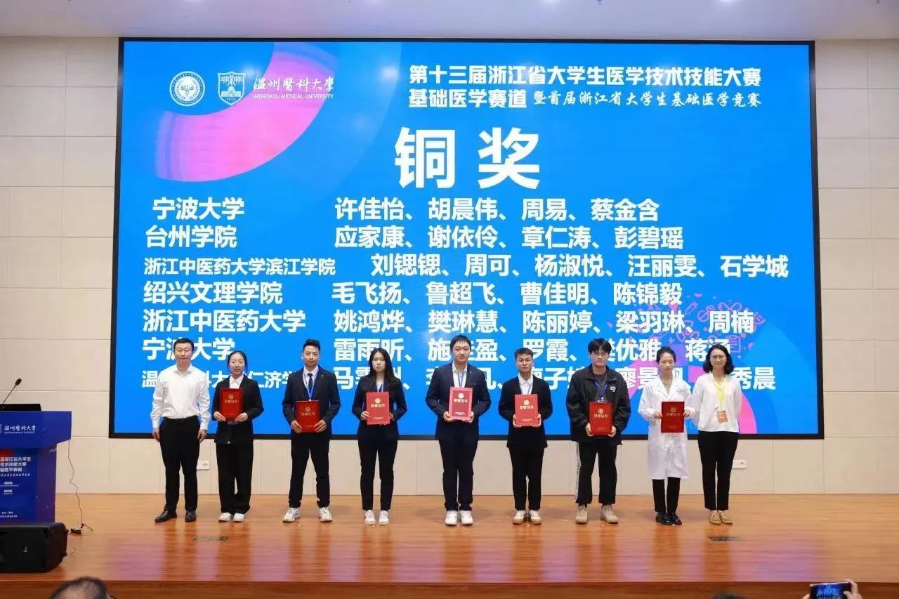 11月4日,第十三届浙江省大学生医学技术技能大赛基础医学赛道暨首届浙江省大学生基础医学竞赛在温州医科大学举行。我院两支队伍与来自全省9所高校29支队伍共131名队员同台竞技,最终斩获“两铜”。