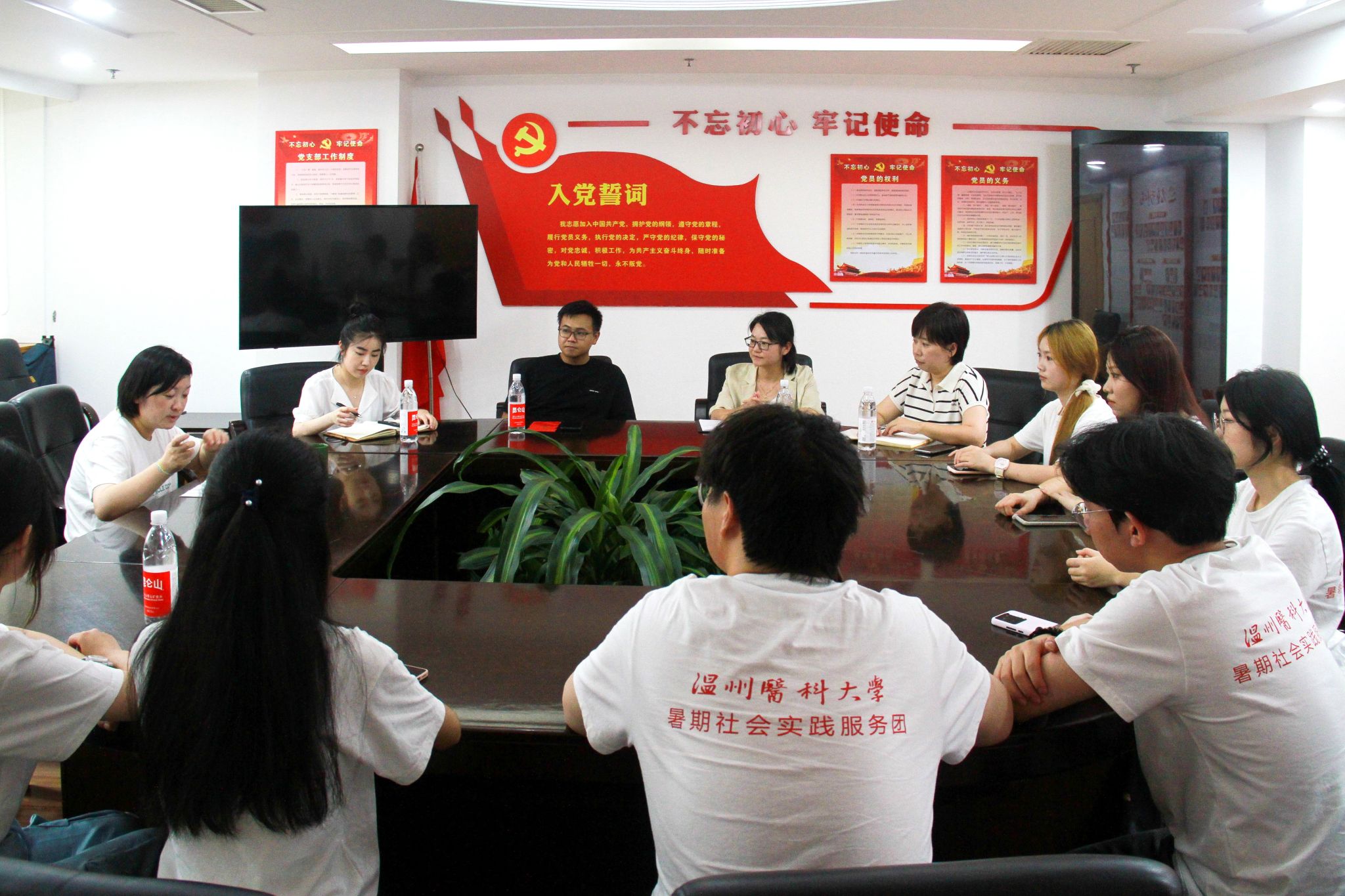 7月8日上午,学院赴温州市新闻传媒中心开展交流座谈,并召开瓯越医线暑期实践团见面会。学院党委副书记姜旭英、温州市新闻传媒中心总编室主任陈泰涨出席会议,双方相关部门负责人、暑期实践团指导老师及全体成员参加会议。