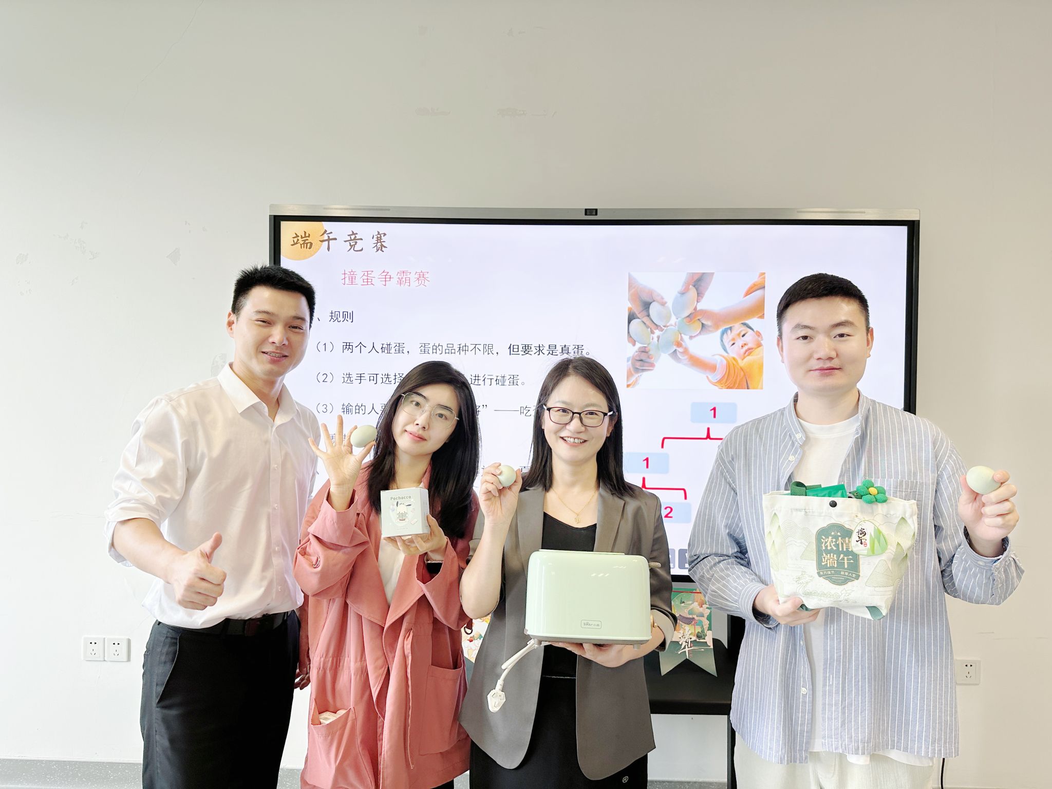 活动现场,浓郁的端午传统文化气息扑面而来。在端午乐园,五毒射箭、钓粽子等传统民俗游戏趣味盎然,教职工在游戏比拼中深刻感受传统节日祈福纳祥的美好愿望。端午工坊内,艾草挂饰、彩绳蛋袋等节日手工制作体验有序开展,让参与者深刻感受传统手工艺承载的文化故事。端午竞赛环节的撞蛋比赛紧张激烈,两两对决的蛋类碰撞声传递着对健康平安的祈愿。端午食堂区域,粽子及本地特色春卷制作体验热火朝天,唤醒了大家对端午记忆的共鸣。端午颁奖时刻,学院领导为教职工送上竞赛礼物,让教职工在活动厚植家国情怀的同时,也深切体会到学院的关怀与温暖。
