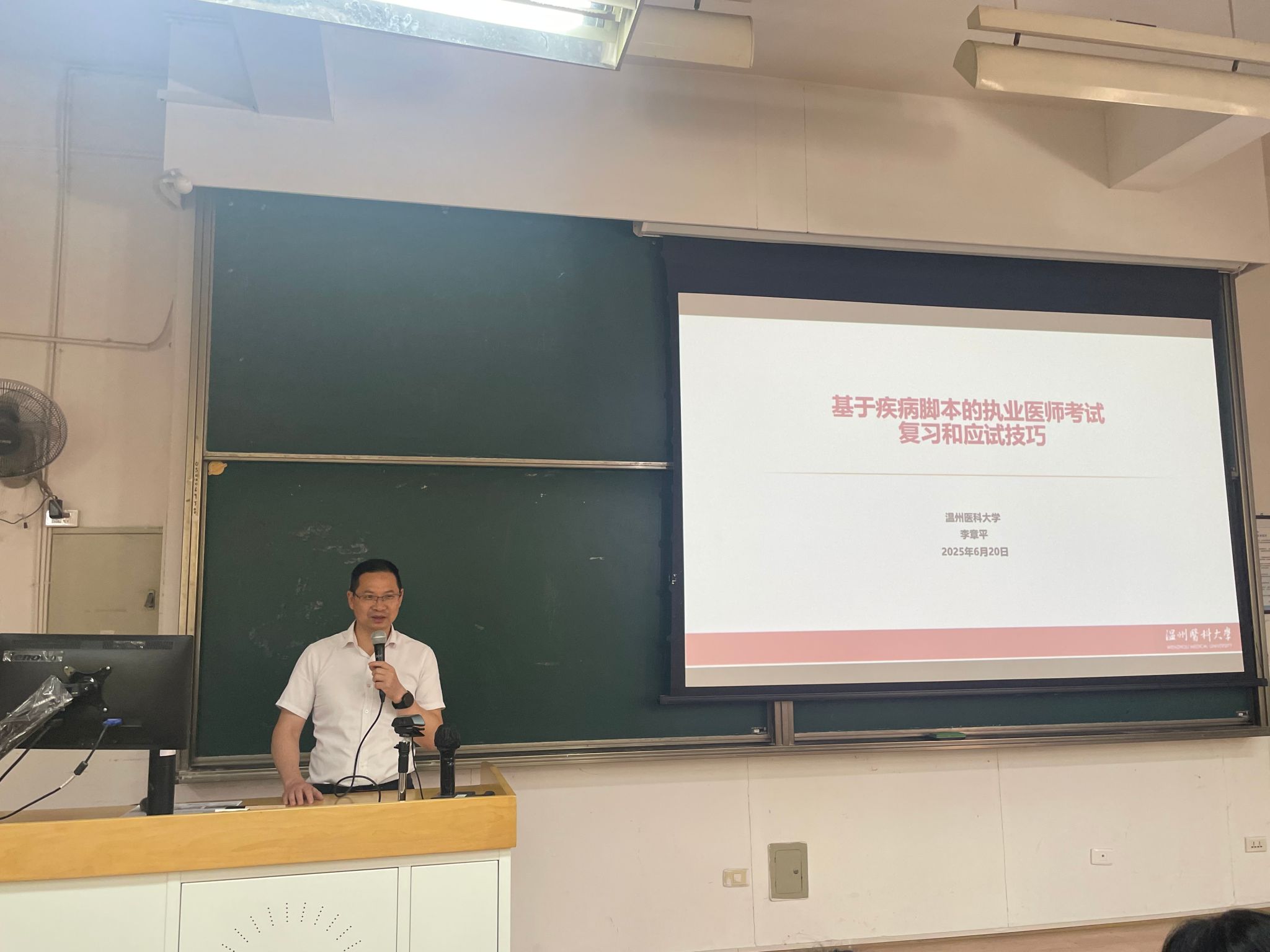 李院长以“基于疾病脚本的执业医师考试复习和考试技巧”为主题,以深入浅出的方式,向在场学生介绍了“疾病脚本”这一独特复习理念。他指出,疾病脚本是将疾病的病因、发病机制、临床表现、诊断、鉴别诊断及治疗等各个环节串联起来,形成一个完整、系统的知识框架。通过构建疾病脚本,能够更加清晰地把握疾病的全貌,加深对知识点的理解和记忆,从而在考试中做到游刃有余。针对执业医师资格考试的特点和题型,李院长详细讲解了各类题型的解题技巧,强调要善于提取题目中的关键词,结合所学知识进行综合分析,准确判断疾病的诊断和治疗方案。