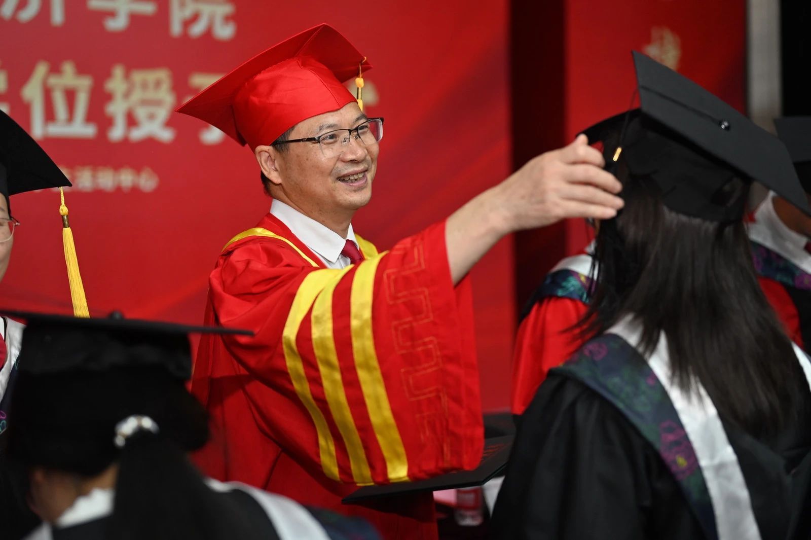 典礼上还表彰了省级、校级优秀毕业生,聘任了一批校友联络员,为毕业生搭建与母校的永恒纽带。学位授予环节中,导师们为学子正冠拨穗,授予学士学位证书,每一帧合影都定格着青春与荣耀。这场仪式不是终点,而是仁济人散作星辰、照亮山河的起点。