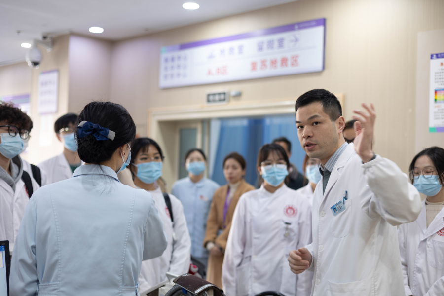“急救中心是医院抢救生命的前沿阵地,面对的是病情各异、年龄不一的患者,我们必须保持冷静与专注。”在洞头区人民医院急诊中心,带教老师正在给温医大仁济学院的一年级医学生们授课。