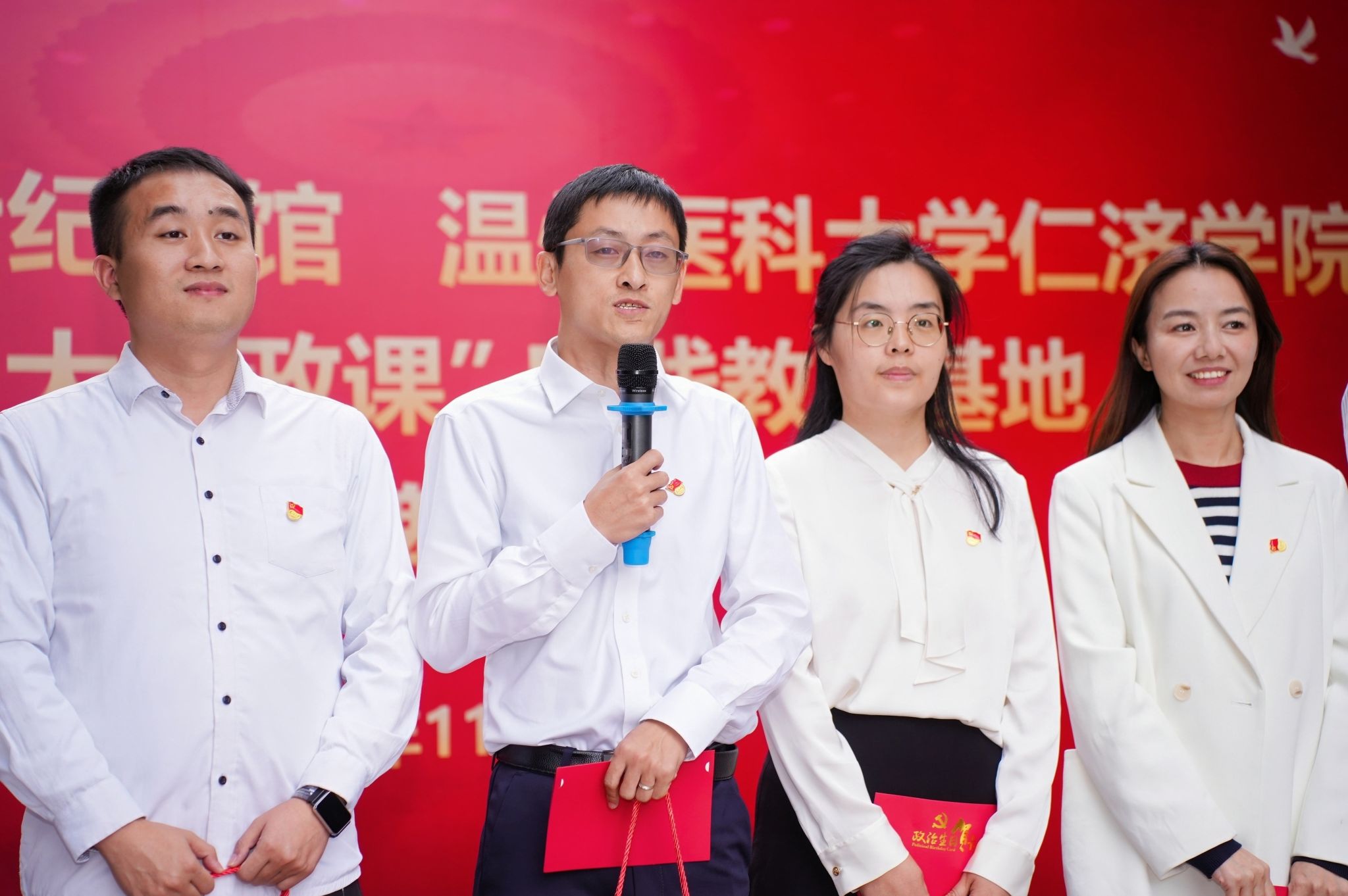 为了用活用好红色资源,推进思政工作创新,深化立德树人效果,11月19日下午,温医大仁济学院与温州革命烈士纪念馆举行“大思政课”实践教育基地揭牌仪式。学院党委书记彭红雷、温州革命烈士纪念馆馆长李婷婷出席活动,仪式由仁济学院党委副书记姜旭英主持。学院领导班子成员、相关科室负责人、支部书记、师生党员代表参加活动。