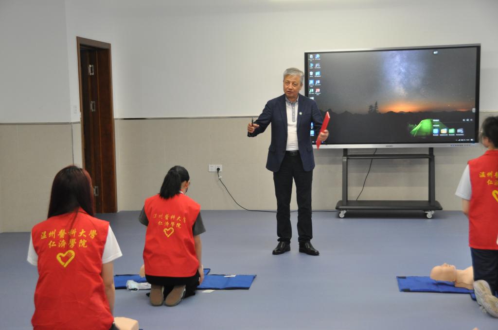 早在2014年3月,温医大仁济学院就成立了急救先锋志愿服务队。作为温州市红十字会的救护员考证基地(中心),该学院目前已培养浙江省救护员4000余人次,普及人数达16826人。学院急救培训品牌包括“浙江省救护员证”考证、急救大赛、“青少年儿童安全自护教育”等,活动参与对象涉及社会各界人士、高校学生和小学生等。