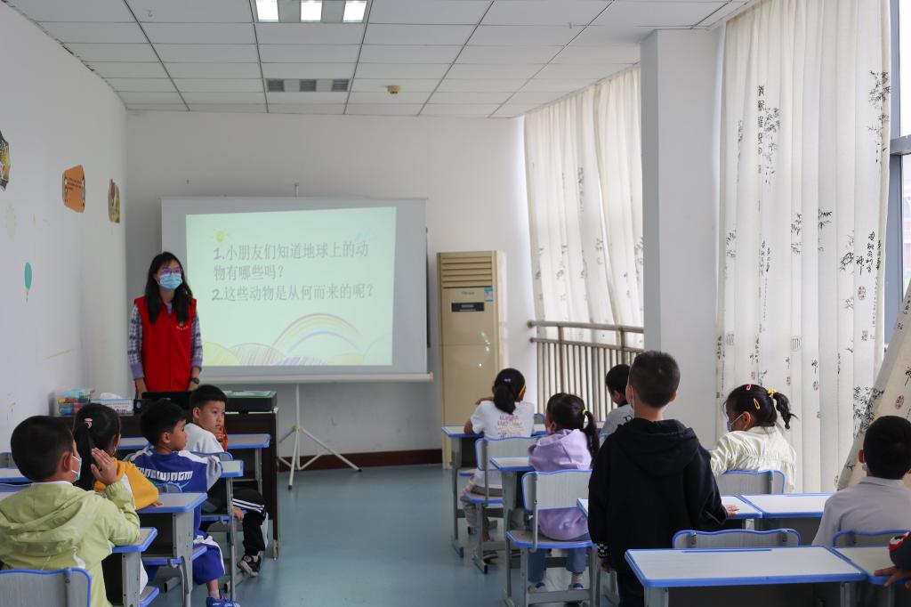 “小朋友们,你们知道地球上的动物有哪些吗?”“这些动物又是从何而来呢?”活动伊始,志愿者以提问的方式拉开本次分享课堂的序幕;而一段生物进化的视频牢牢抓住了孩子们的眼球,他们一边津津有味地看着视频中的生物进化过程,一边展开自己脑海中对于每一种动物无尽的遐想;带着遐想进入动物进化史知识海洋,从简单到复杂,从低等到高等,从水生到陆生,一步又一步,志愿者们变换着表达方式,引导着孩子们学习各种动物的形象特征、生长环境、生活习性等知识;以五点动物保护行为指南作为分享课堂的尾声,呼吁小朋友们要保护动物、呵护自然界的每一个生命。