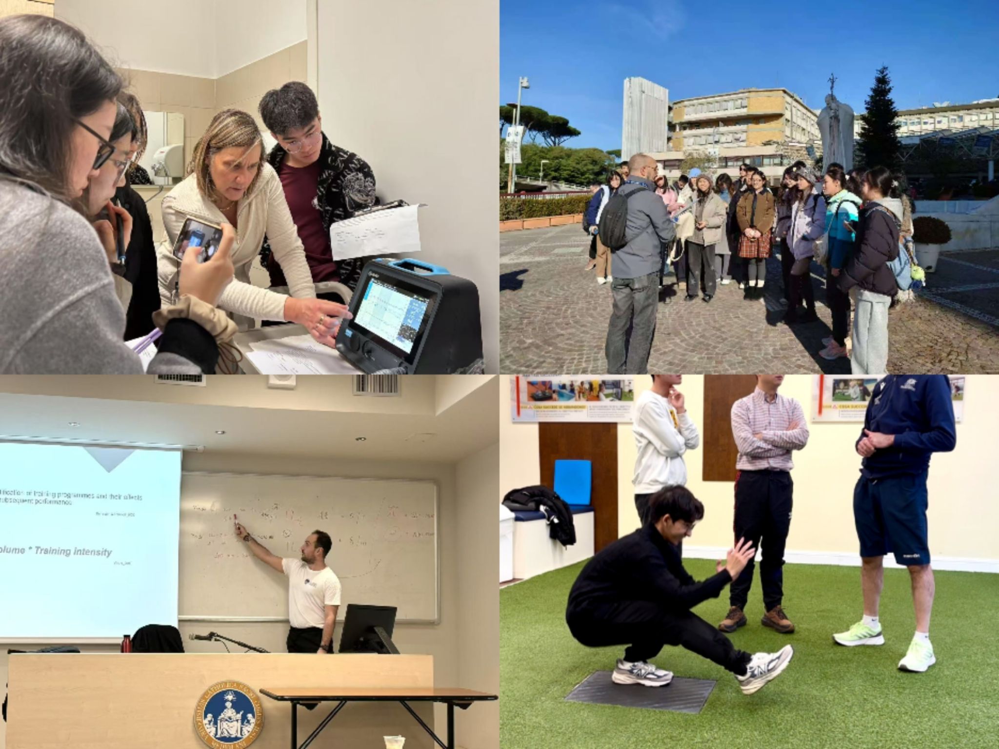高怡程和李直同学深入学习心血管疾病预防与运动干预技术,并在附属医院Policlinico Gemelli参与临床实践。高怡程表示:“课程结合理论与案例,让我掌握了FITT(Frequency、Intensity、Time、Type)运动处方原则,更体会到医学作为科学与艺术的融合。”李直则重新审视了自己的职业规划,希望今后能将临床数据分析能力与运动行为干预技术结合,破解慢性病管理困局。
