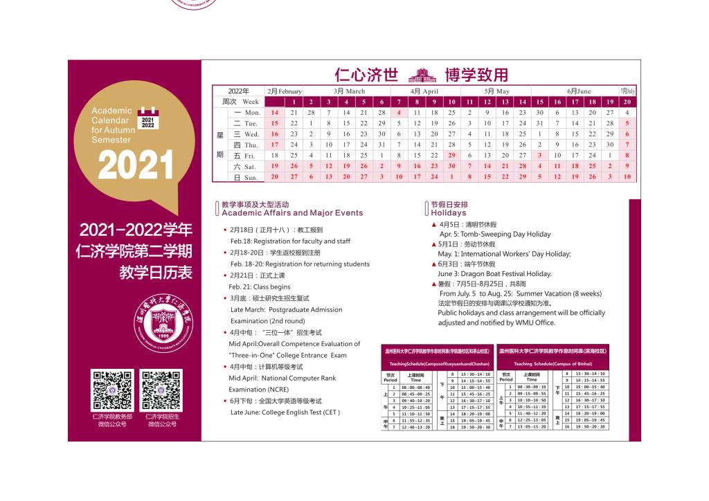 fb体育登录入口·(中国)官方网站2021-2022学年第一学期和第二学期教学日历表
