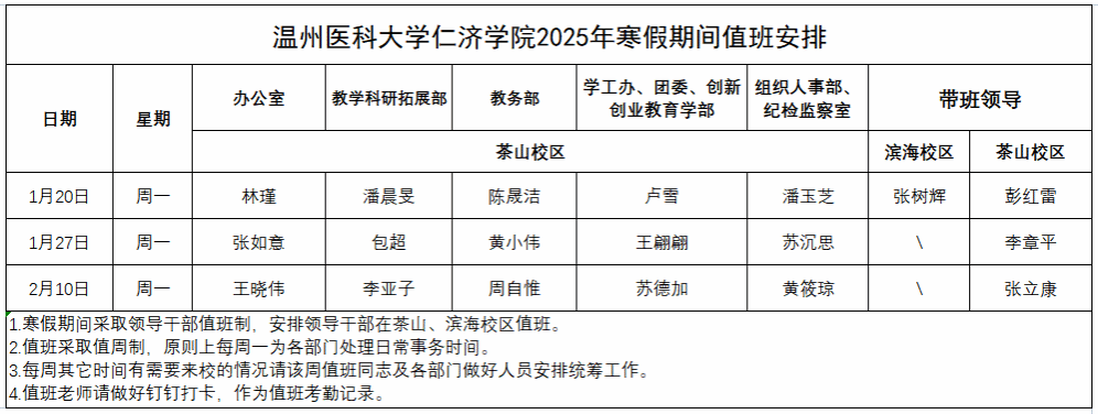 四、行政值班安排