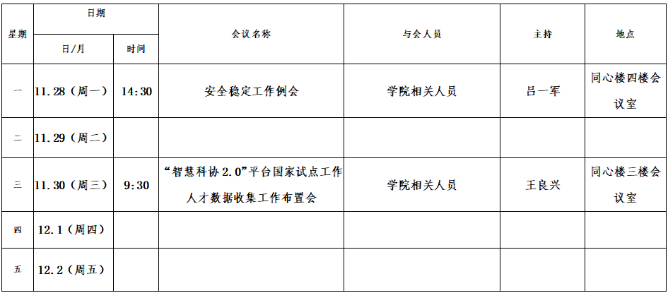 第十五周会议安排