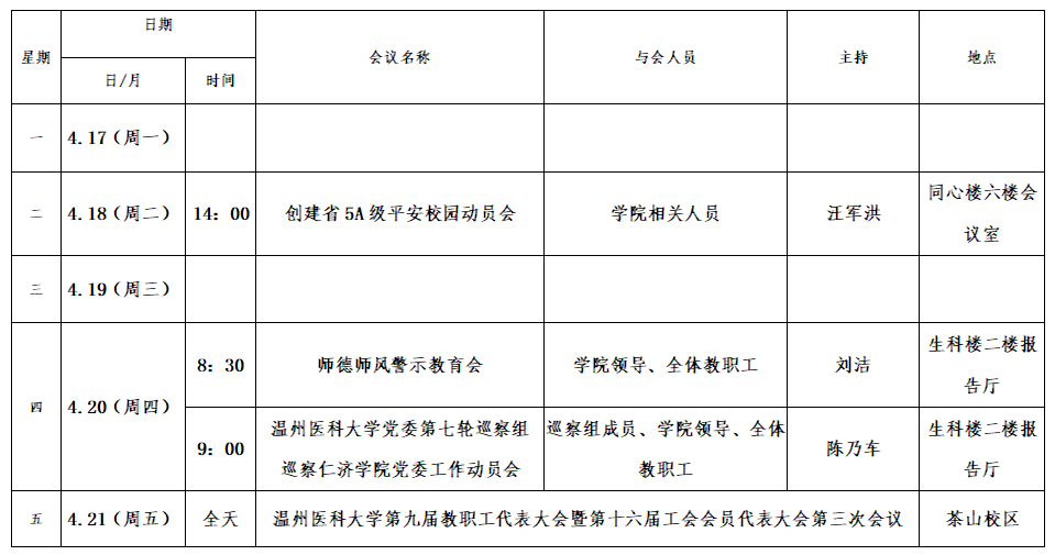 第十一周会议安排