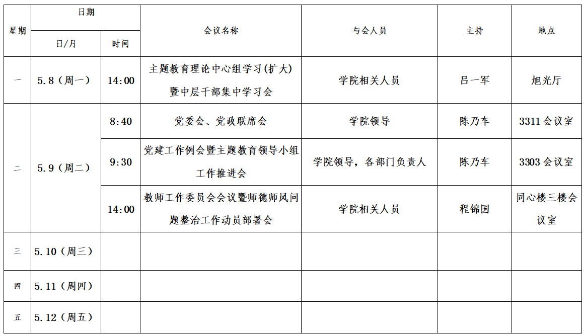 第十一周会议安排