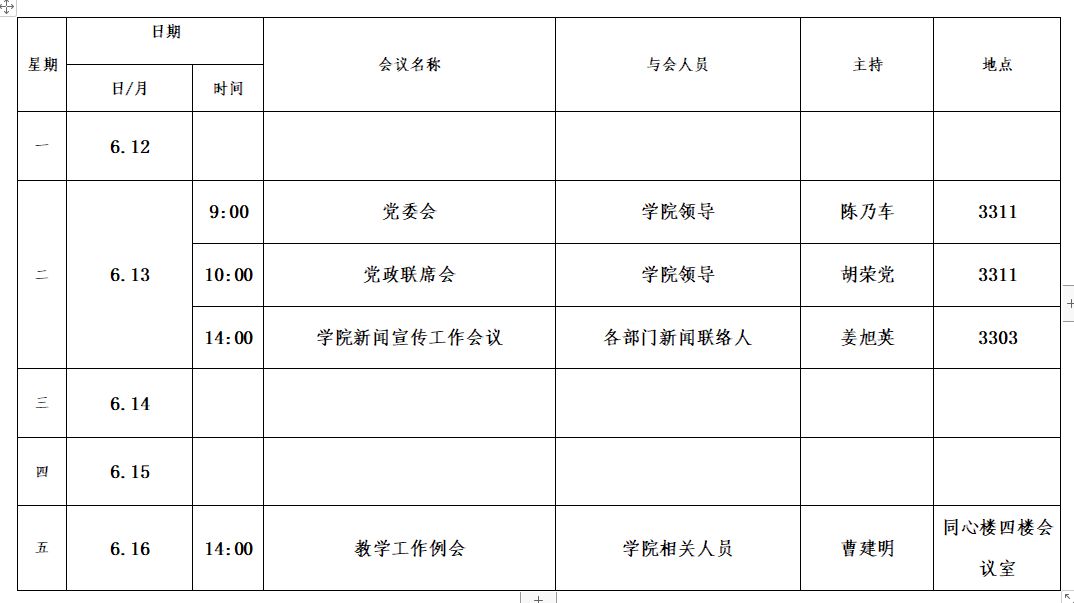 第十九周会议安排