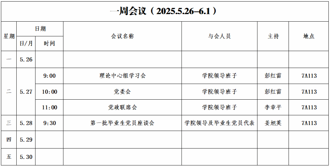 第十五周会议安排