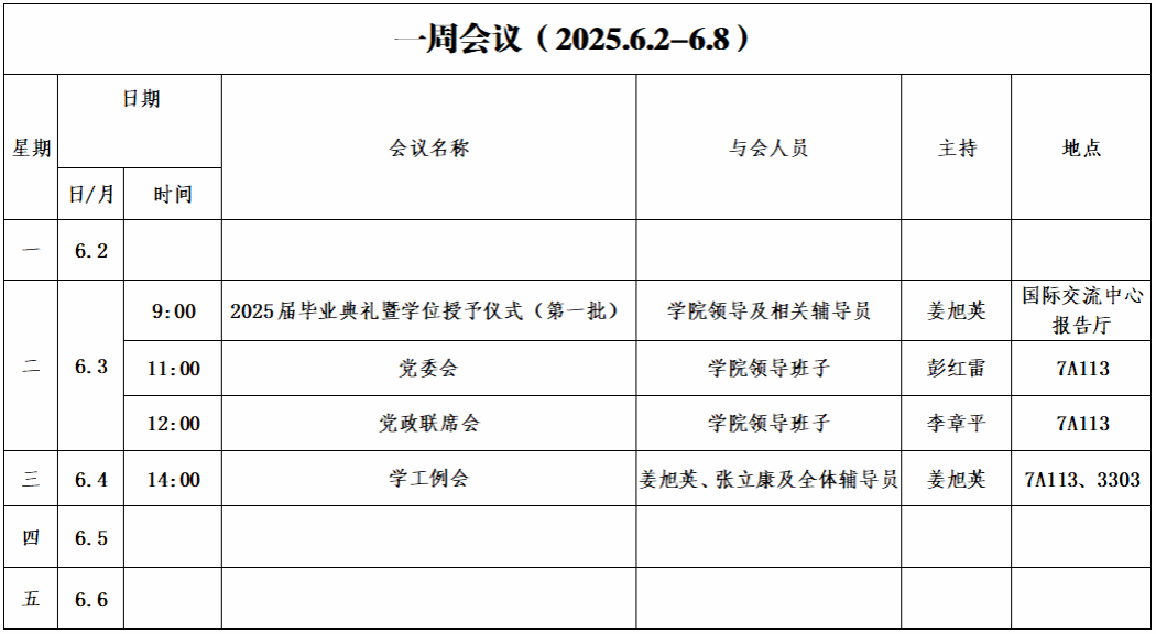 第十七周会议安排