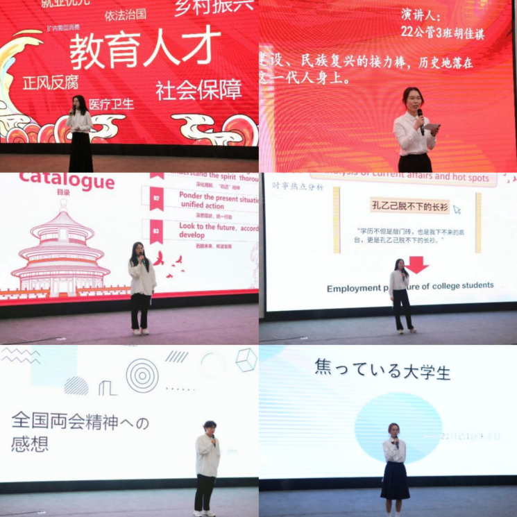 此次比赛分为三个赛道,汉语、英语和日语。三个赛道中各位选手分别用三种语言通过演说的形式,结合自身实际对观众讲解fb体育登录入口·(中国)官方网站习近平新时代中国特色社会主义思想的见解和心得,表达对党的理论知识的认识与感悟,也对当前我国时政热点如当代高校毕业生的就业问题,中医药对疾病预防和治疗发挥的重要作用,社区养老服务企业相关的“银发经济”的发展等发表自己的认知和见解,现场高潮迭起、精彩纷呈。经过初赛、决赛两轮激烈的角逐,三个赛道分别产生一、二、三等奖。专业评委老师对同学们的演讲进行了点评,既为选手们点明了语法使用不当问题,也表达了对参赛者们用语言展示演讲自信的肯定。