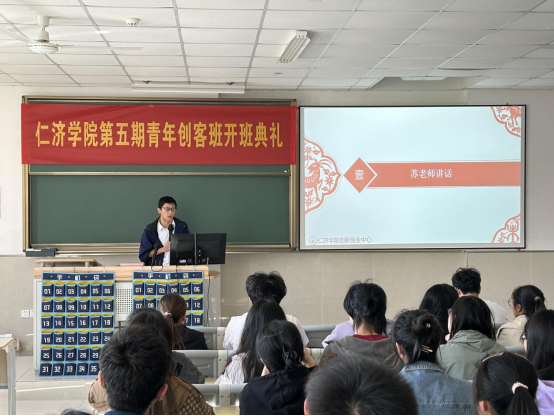 苏德加表示:希望以此次创客班课程为契机,让同学们学会创新的思维,培养创业的胆量,养成创业的习惯,内孵外化学生创业项目,助力社会服务和公益创业。他简要介绍了本期创客班课程安排和培养方式,即以导师授课和专家讲座为主,邀请我院优秀项目进行展示,还将给予优秀学员跟随企业参展的福利。苏德加对参加创客班的同学们提出三点要求和建议:一是守“本分”,即讲职业操守、职业道德,不能投机取巧、抬高自己伤害别人,要讲究团队意识。二是做“本行”,作为学生,学习是第一要务,首先要掌握系统的专业知识与技能,不能好高骛远,眉毛胡子一把抓。三是有“本领”,创业能力包括创新能力、人际交往能力、协调能力、经营管理能力、团队合作能力等,大家要在创业实践中不断学习,不断提高,不断掌握应对市场变化的本领和能力。相信创客班的学子们经过一学年的教育熏陶,一定会激发大家的创业热情,挖掘自己的创业潜能,树立创业意识和竞争意识以及掌握创业的必备知识。