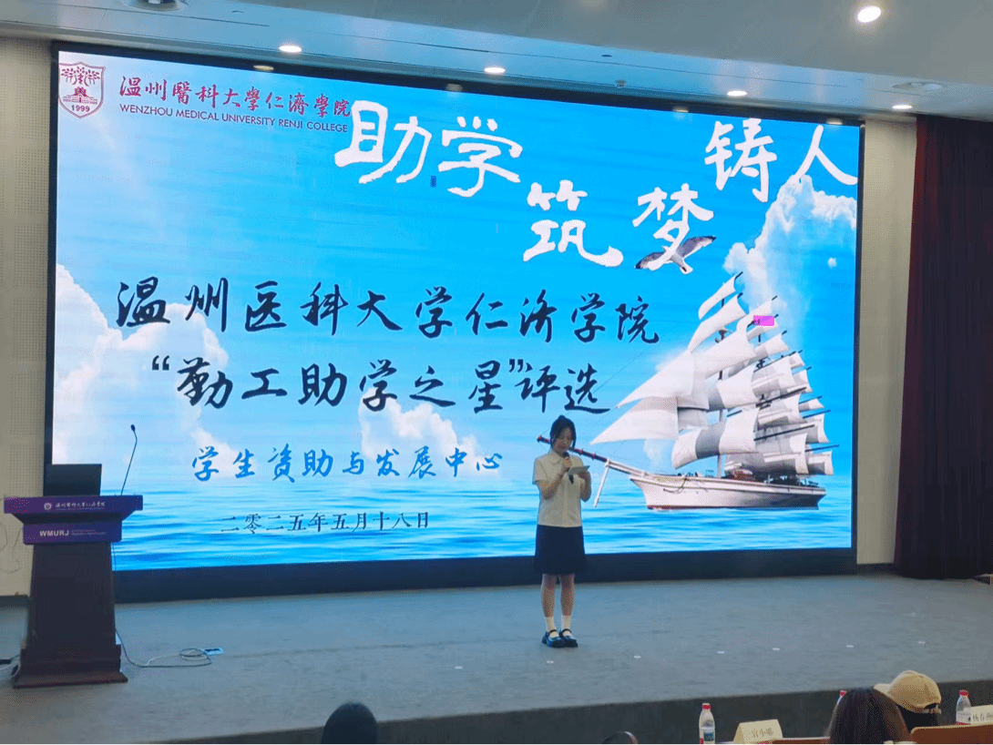 在现场汇报阶段,候选者们依次围绕自身的勤工助学经历、个人成长以及社会责任等多个维度,声情并茂地分享自己在求学问道、成长成才之路上与勤工助学相伴的故事,生动且鲜活地展现了仁济学子奋发向上的青春风采和顽强拼搏的奋斗精神。他们中有成绩斐然、积极参与各类科研项目的 “前行者”,于知识的海洋中不断探索前行;有以拼搏书写青春誓言、以熟练且专业的姿态扎根勤工助学岗位,精心铸造自己大学生活的 “奋斗者”。
