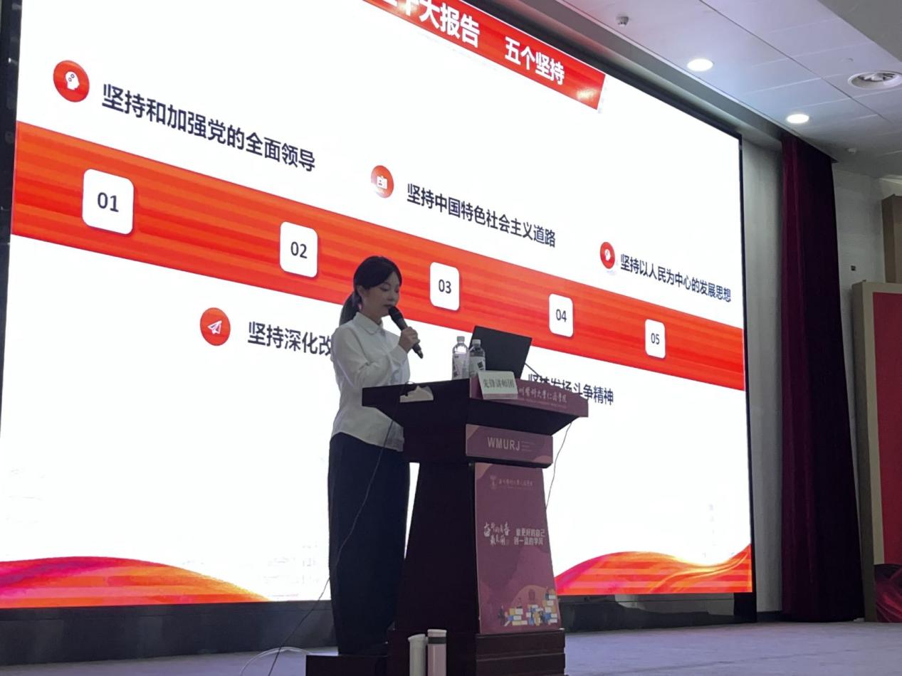 主讲人雍欣怡以“续写创新史”为主题,从思想上的创新和社会发展模式上的创新这两个角度着手带领学员深刻体会新中国成立后发生的伟大变革。创新是一个民族的灵魂,是一个国家兴旺发达的不竭动力。主讲人通过两个生动的例子,讲述了中国农村发生的深刻变革,完美的证明了在中国共产党的领导下,人民当家住主走上致富的道路。同时通过过去与现代创新内容的对比,体现了中国发展之迅速,创新之火生生不息。主讲人指出:现在一切美好的事物都是创新的果实。激励我们这一代人要敢于创新,为全面建成富强民主文明和谐绿色的社会主义现代化国家而奋斗。