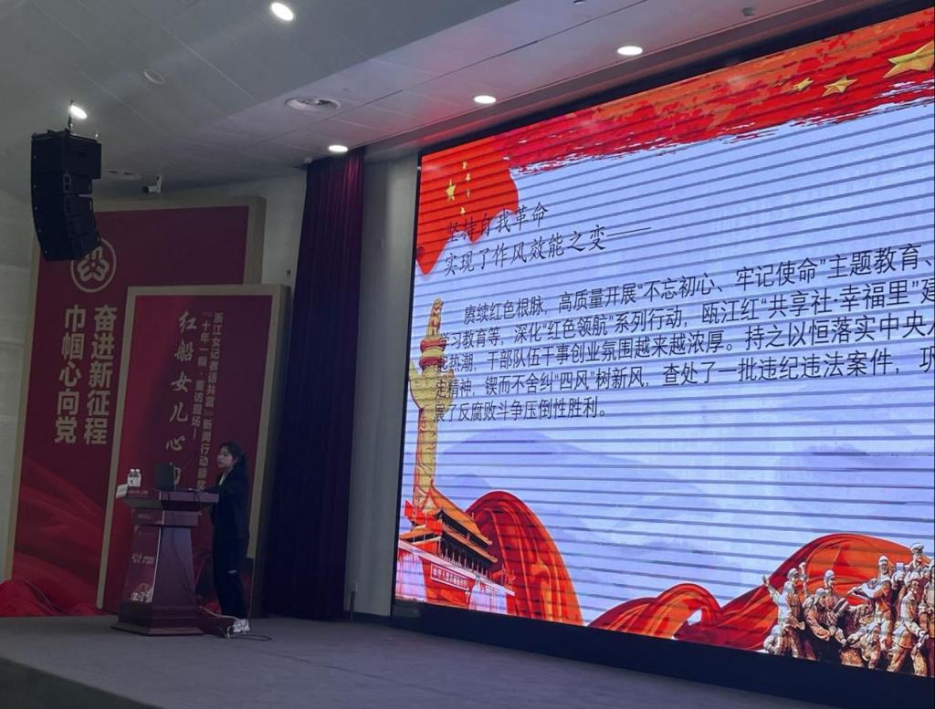 主讲人周琳为各位学员带来主题为“中国式现代化道路的温州历史与经验”的微党课。她首先介绍了中国式现代化的具体表现,引出“温州的现代化是中国式现代化的一个缩影”,再以“文成那十年”来介绍新时代温州现代化的新发展。新征程的路途中,广大青年是探索中国式现代化历史进程中的先锋力量,在探索追求中国式现代化的历程中,一代代中国青年留下了自己的奋斗足迹,燃烧了青春激情。面向未来,中国青年必将在参与推进中国式现代化的新征程中续写更加辉煌的时代篇章,以更加强烈的历史主动精神助力推进中国式现代化,为全面建设社会主义现代化国家、全面推进中华民族伟大复兴贡献青春力量。