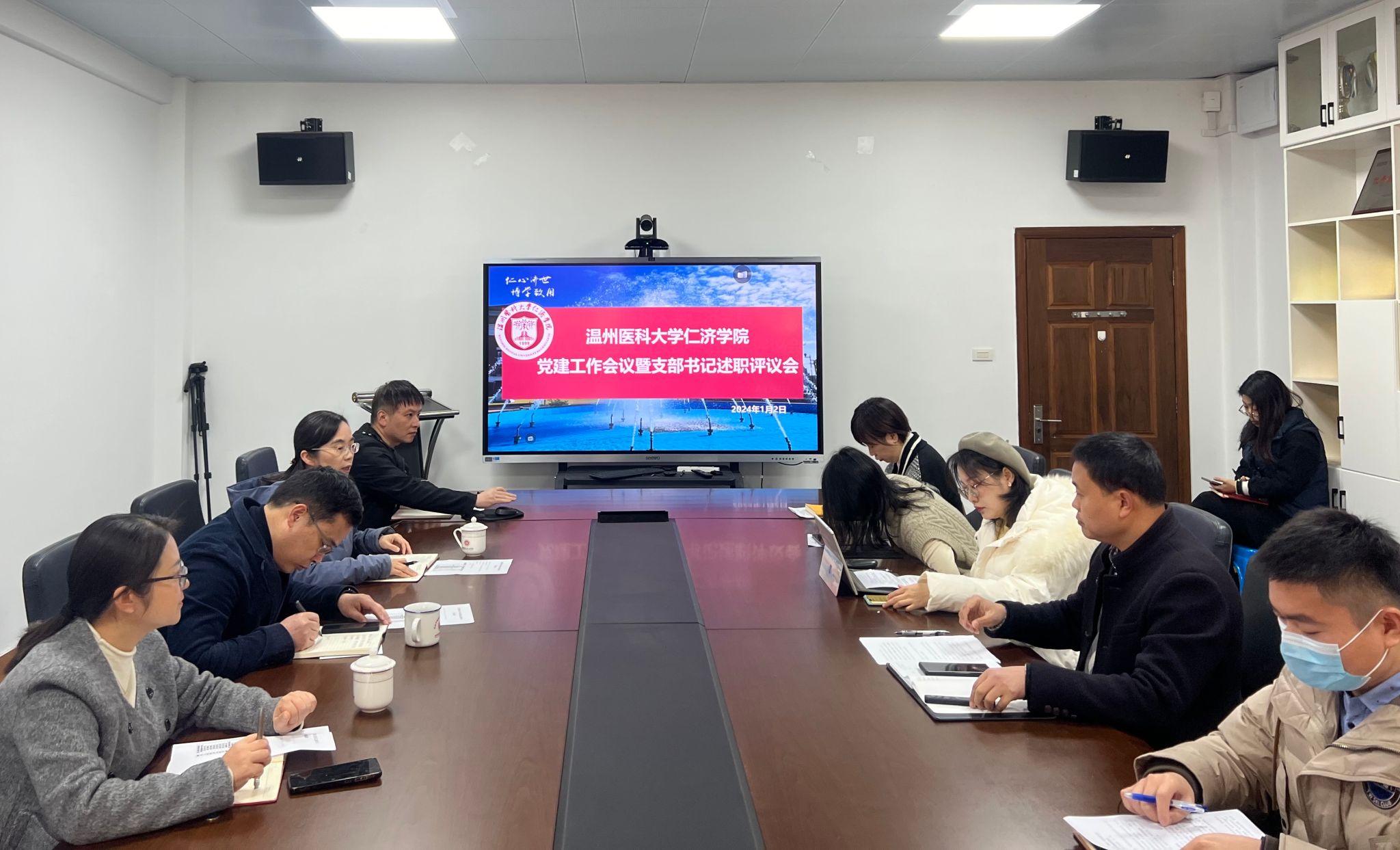 1月2日,仁济学院在茶山7A113会议室召开党建工作会议暨支部书记述职评议会,学院全体党支部书记及相关党务干部参加会议,党委书记陈乃车、党委副书记姜旭英出席会议,会议由党委副书记刘洁主持。