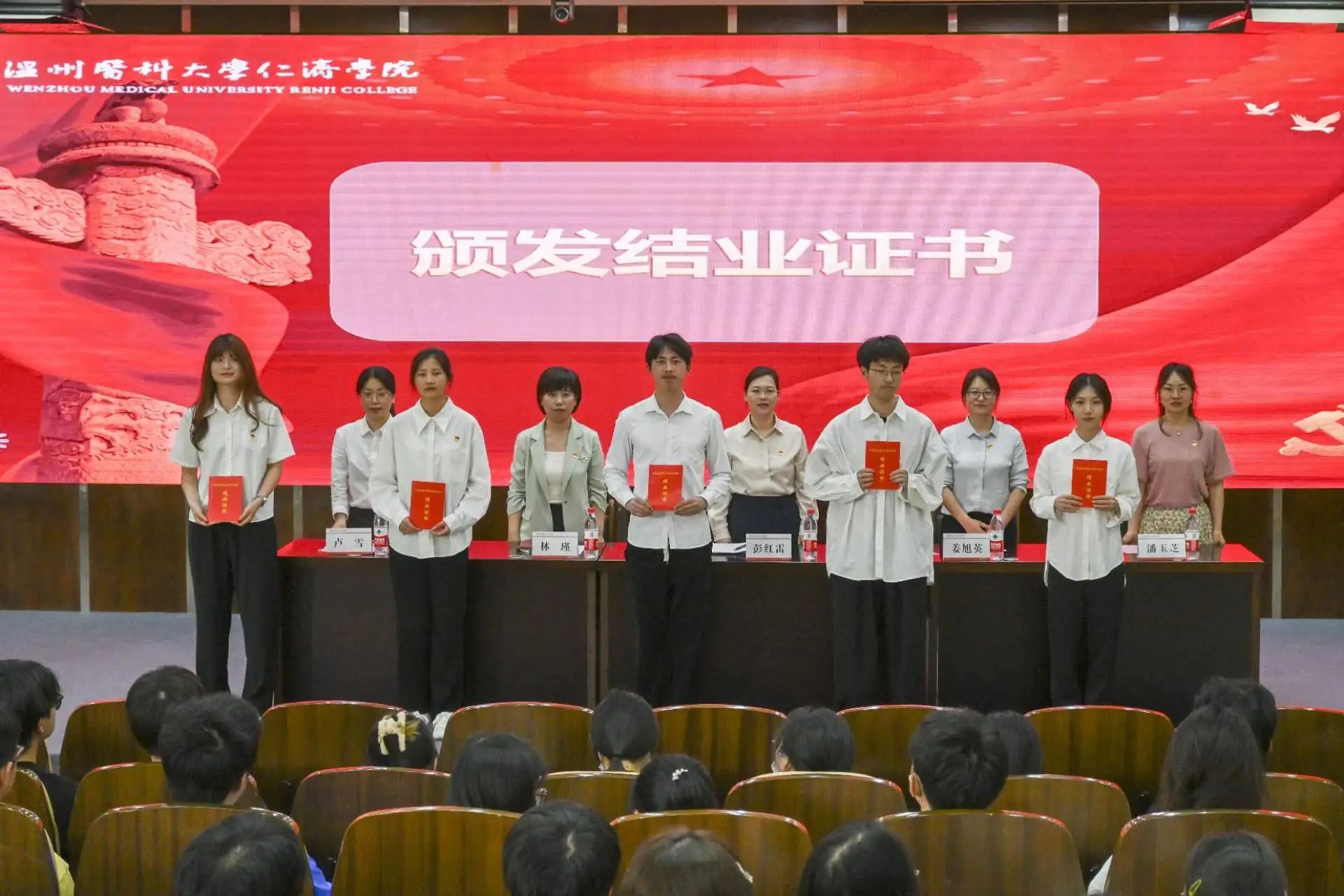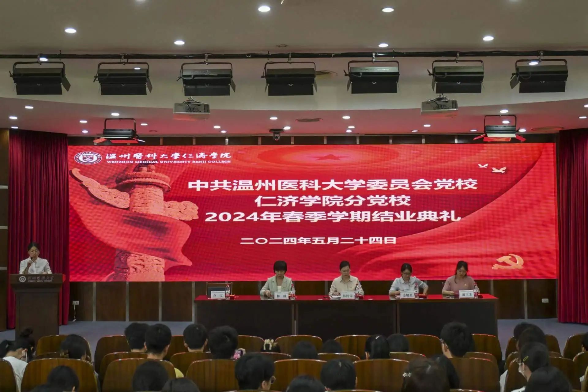 5月24日,中共温州医科大学委员会党校仁济学院分党校2024年春季学期结业典礼于茶山校区旭光厅举行,滨海校区仁心厅同步直播。学院党委书记、分党校校长彭红雷,党委副书记、分党校副校长姜旭英,学院办公室主任林瑾,组织人事部主任潘玉芝出席,全体培训学员参加,典礼由学生工作办公室副主任卢雪主持。