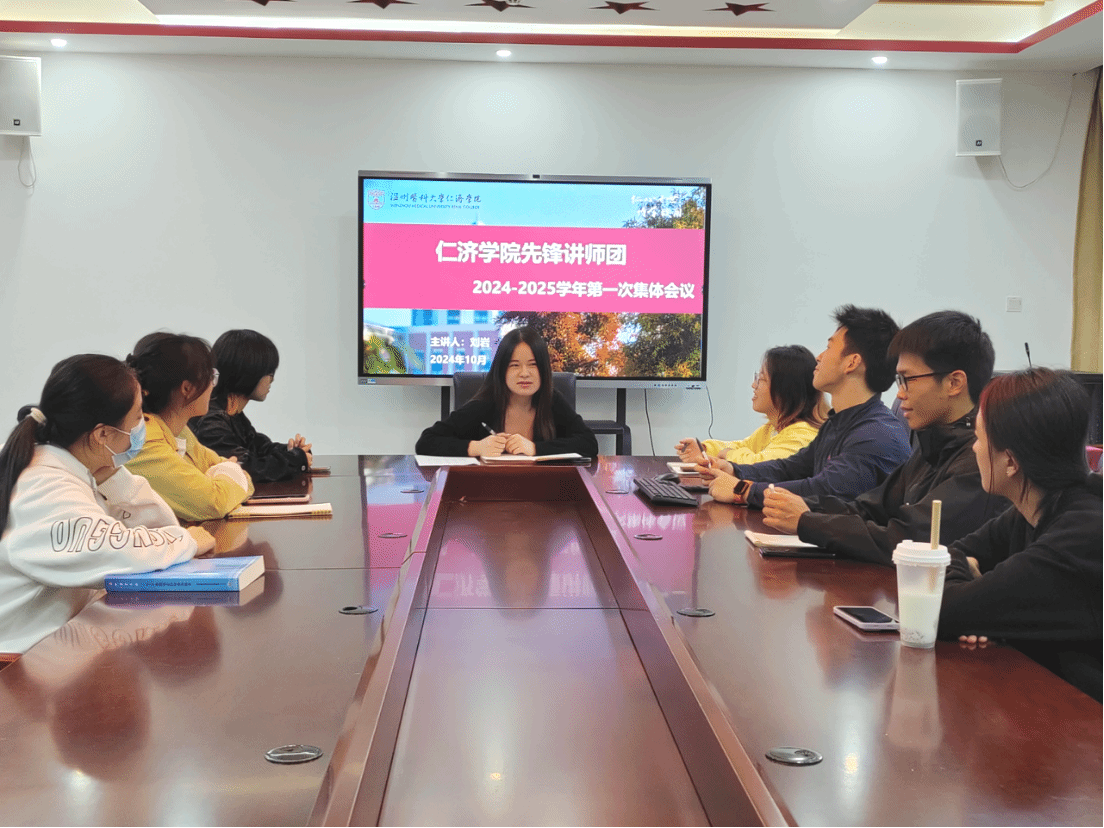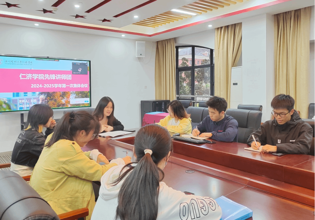 为强化学生党性修养,提高学院朋辈教学质量,仁济学院先锋讲师团于2024年10月24日下午在滨海校区至仁楼3103会议室召开线下集体备课会,茶山校区学员线上参会,会议由先锋讲师团指导老师刘岩主持。
