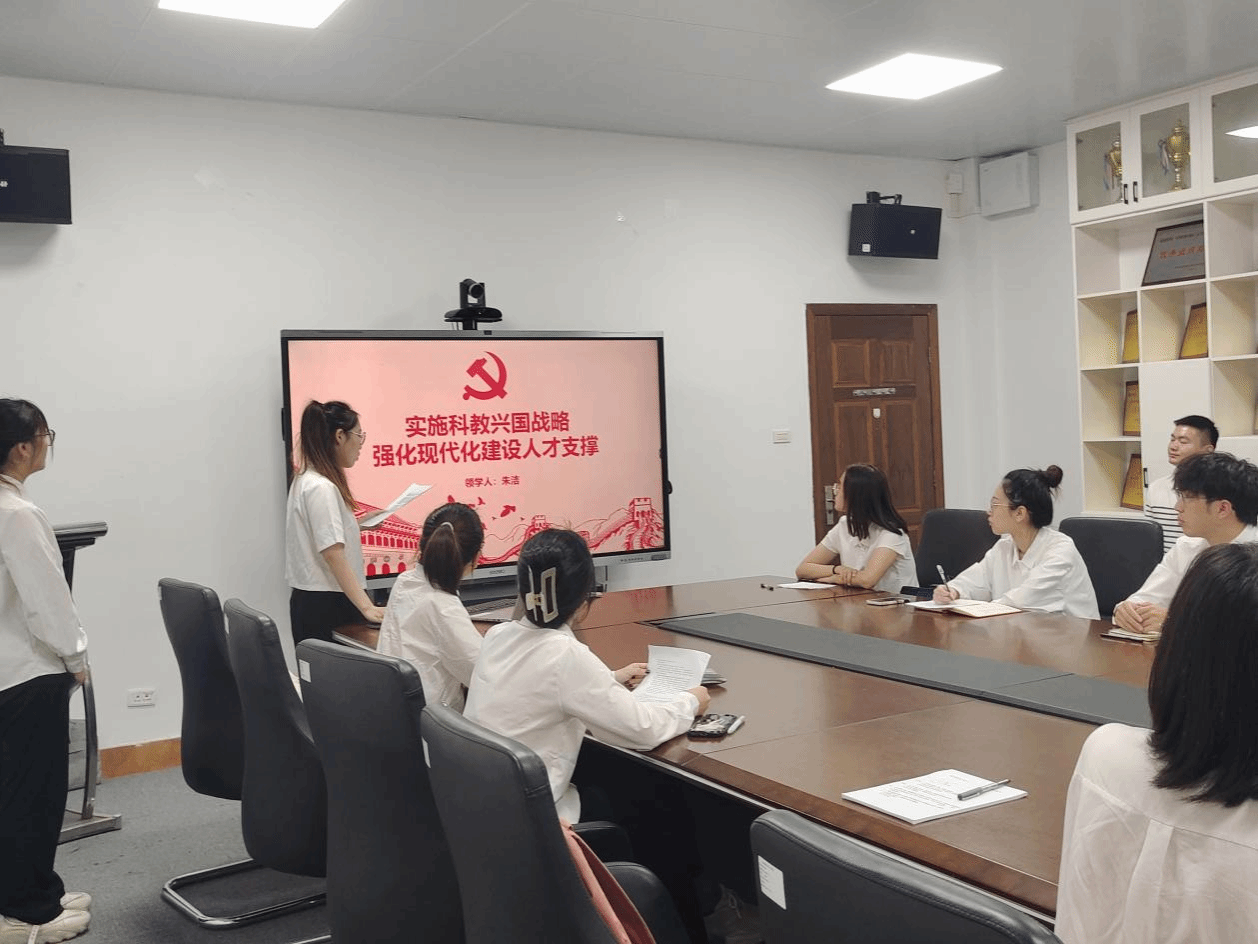 在理论学习中,支部领学人聚焦“实施科教兴国战略,强化现代化建设人才支撑”进行了详细讲述,阐释了科教兴国战略在新时代的科学内涵和使命任务。大家一致认为,新时代科教兴国战略,充分体现出以习近平同志为核心的党中央对教育、科技、人才工作重要战略意义的深刻认识,反映了新时代新征程对科技、教育、人才的更强需求和更大期待。