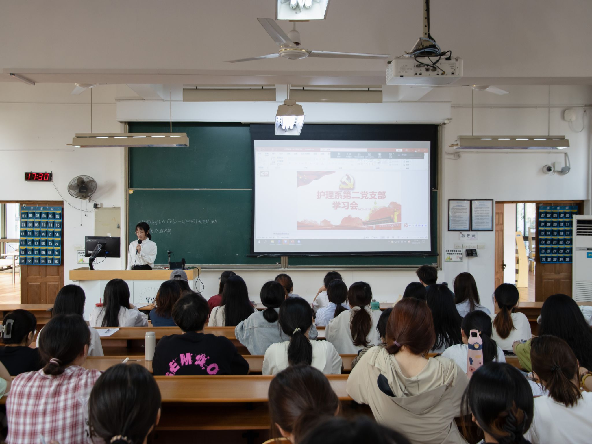 为加强同志们的节能环保意识,讲好中国环保故事,2024年5月18日下午17:30,护理系第二党支部在茶山校区7AJ302教室和钉钉线上举行学习会,本次会议由施晶晶同志担任主持人。
