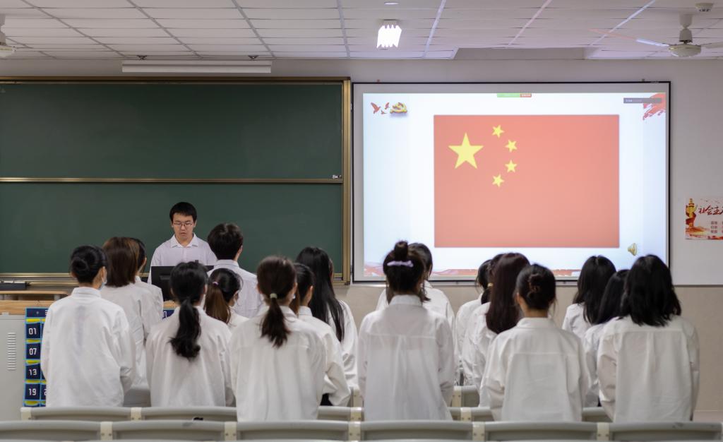 会议开始之前,主持人强调了本次会议纪律,第一项议程全体起立、奏唱国歌,随后会议正式开始。首先,主持人将支部情况做了简要概述,之后详细讲述了入党的具体流程,对积极分子下一步发展提出了明确的要求,希望各位积极分子端正态度,明确自己的入党动机,在今后的发展中积极地面对党支部的考核。