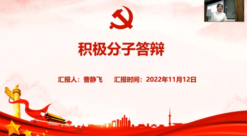 参与答辩的积极分子分别从思想、学习、生活、工作和入党动机等方面进行阐述,向党组织汇报自身情况。各位积极分子在向党组织表明决心的同时对自身不足之处进行了深刻的反思与总结,并规划了自己未来的努力方向。