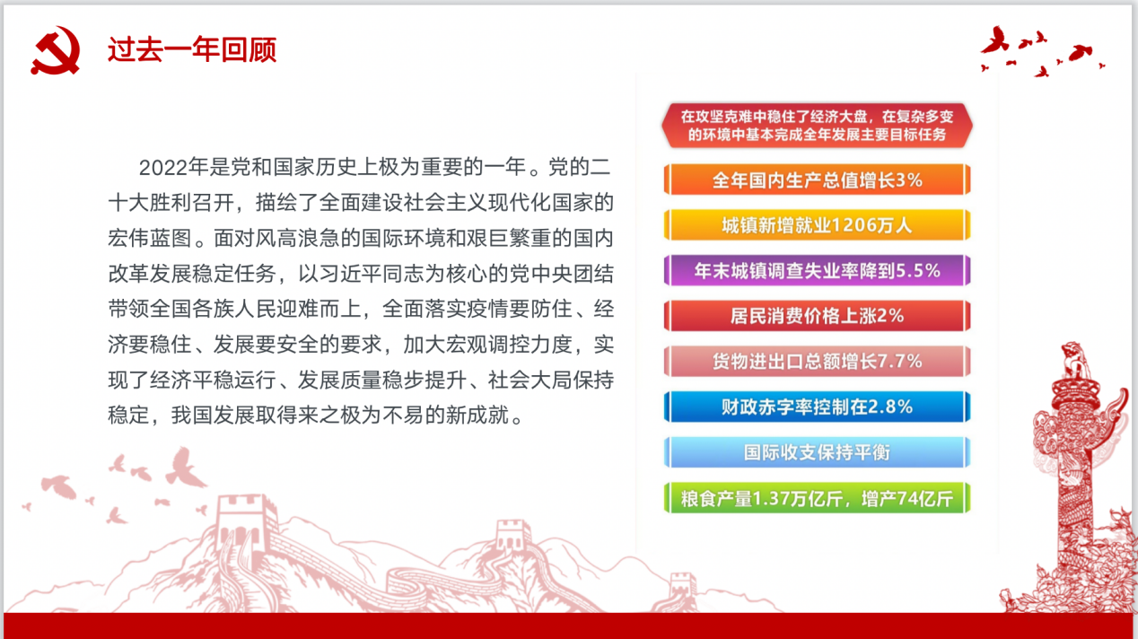 首先,我们观看了中国青年报制作的《参数》节目,记者在北京、南京、南宁、成都和乌鲁木齐进行了街采,了解了对于今年全国两会,青年们都在想什么。之后进行了对2023全国两会政府工作报告的宣传与解读,分别从过去一年和过去五年工作回顾以及对今年政府工作的建议两方面入手,讨论了我们大学生党员该如何从日常工作学习生活中自觉实践两会精神。