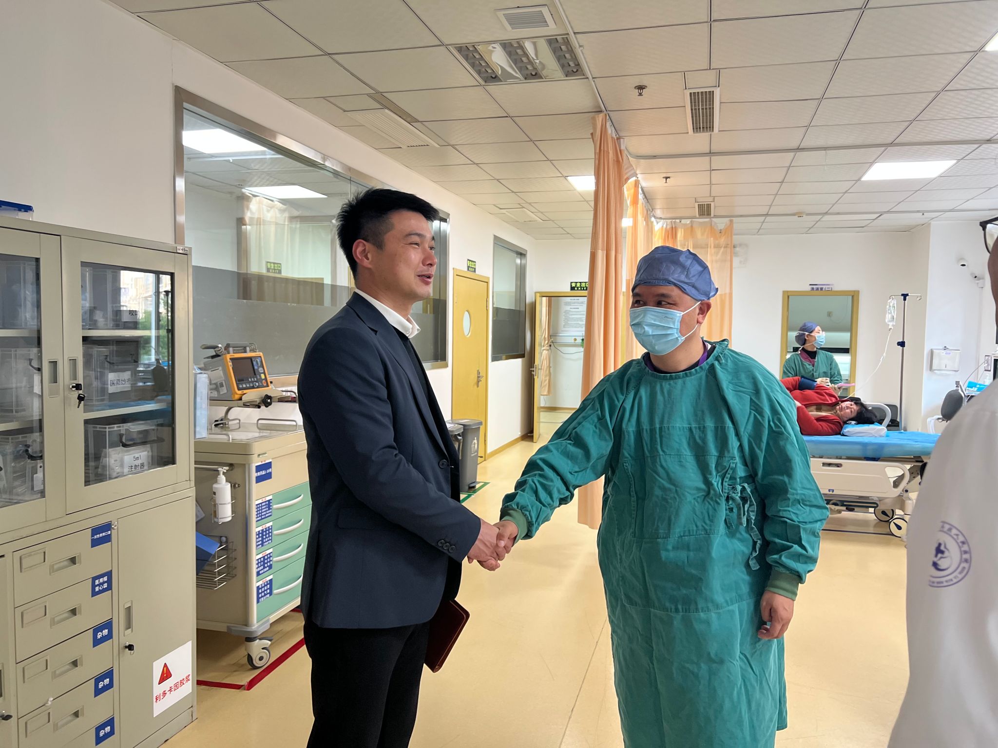 洞头区人民医院党委书记童海光对张立康一行的到来表示欢迎,他详细介绍了医院发展历程、医师结构、基础设施及新院区建设进展。童海光表示,在过去的几年里,仁济学院与洞头区人民医院之间建立了坚实的合作关系,为培养更多优秀的医学人才奠定了坚实的基础。医院新院区的落成,与仁济学院仅一路之隔,这无疑为双方的合作提供了更加便利的条件,使得学生能够更加便捷地参与到医院的实践活动中,亲身体验真实的医疗环境,从而更好地将理论知识与实践相结合,这里将会成为仁济学院培养医学人才的理想实践基地。