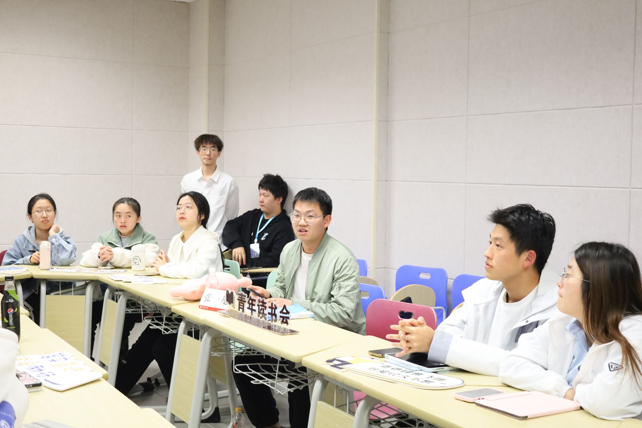 其次,张一凡老师开始讲述他的故事,分享了童年以及青春时期买书读书的经历,讲述了阅读使自己知识量增加的故事。紧接着,同学们也积极分享了自己的阅读启蒙以及读好书给自己带来的改变包括视野拓宽、气质的改变等等。