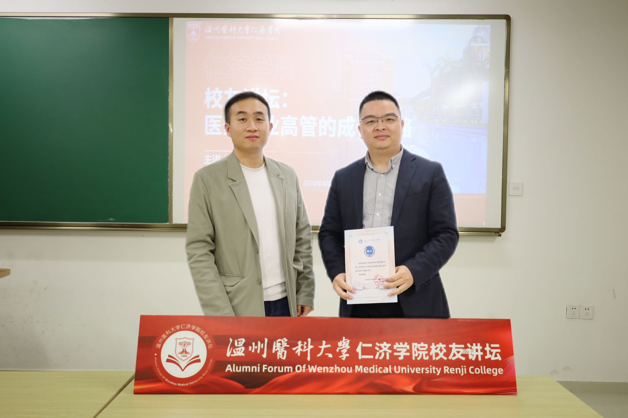 4月17日晚,康哲药业温州地区经理、温州基础医学院就业导师、仁济学院09届药学专业校友施正侨先生莅临本院。作为“校友讲坛”第四期嘉宾,施正侨校友为我们带来了题为“筑梦青春,职引未来”的讲座。他结合自身经历分享了诸多宝贵经验,为即将步入社会的学子们提供了重要启示。