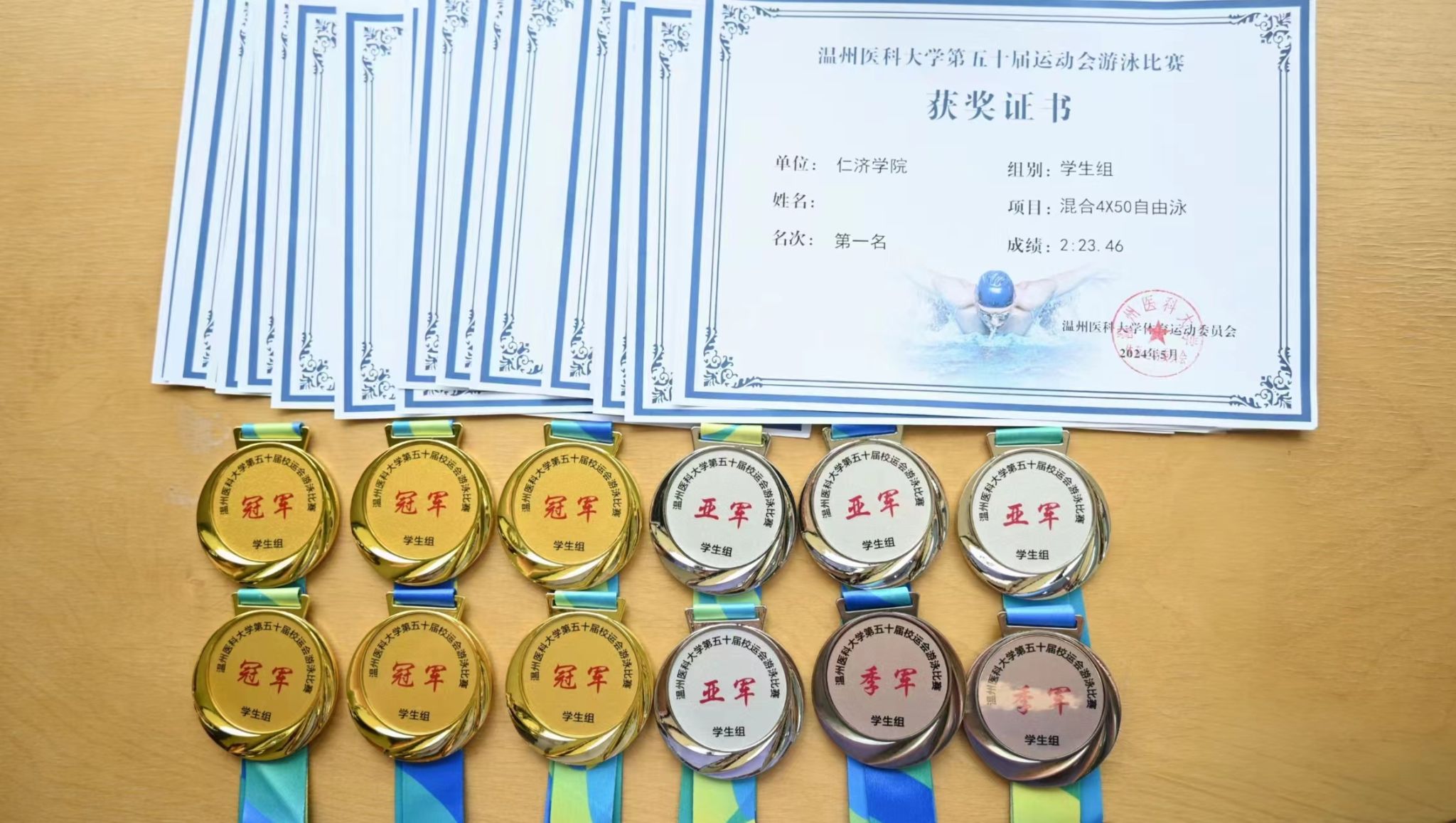 5月18日,温州医科大学第五十届运动会游泳比赛在茶山校区游泳馆圆满落下帷幕。我院派出学生8名和教职工6名参加角逐,经过一个月的艰苦训练,在众多高手的角逐中脱颖而出,取得学生组团体第一、教工组团体第五的好成绩。