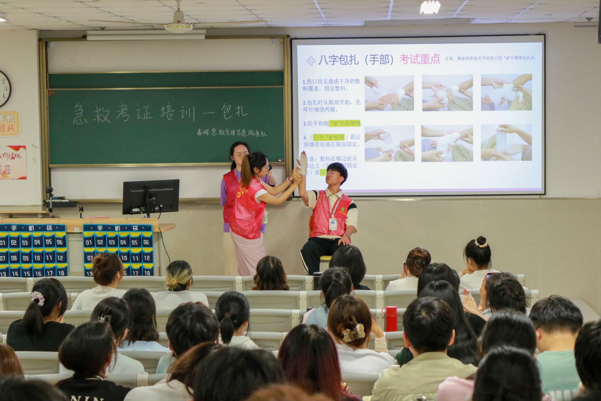 5月25日,仁济学院邀请温州市洞头区红十字会的叶帅老师为仁济学院的同学们开展了一场别开生面的急救技能培训。叶老师采用了“理论+实操”的授课方式,通过生动的案例,详细地讲解了包扎技巧、心肺复苏以及海姆立克急救法,同时,结合生活中的实际案例,向同学们介绍了中暑和癫痫的急救方法以及拨打120的注意事项。培训后,同学们纷纷亲自动手,投入到实践操作中。老师和志愿者们在一旁提供细致的指导,并着重指出操作中的关键点和常见错误。本次培训共有67名同学顺利通过考核获得“红十字救护员”证书。