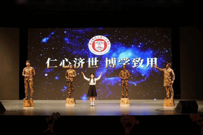 期间穿插的不同类型节目展现了学院学子青春飞扬的昂扬风姿。器乐表演《盛世国乐》体现了中华民族的深厚文化底蕴;铜像讲述《穿越时空的追寻》演绎了那些波澜壮阔的岁月;情景剧《生命的奇迹》再现了王珏医生敬佑生命,救死扶伤的动人故事,传递出人性的善良和温暖;歌曲《致吾辈》、舞蹈表演《有我》以蓬勃激昂的表现力致敬一代又一代将祖国希望、时代重任牢牢托起的中国青年。