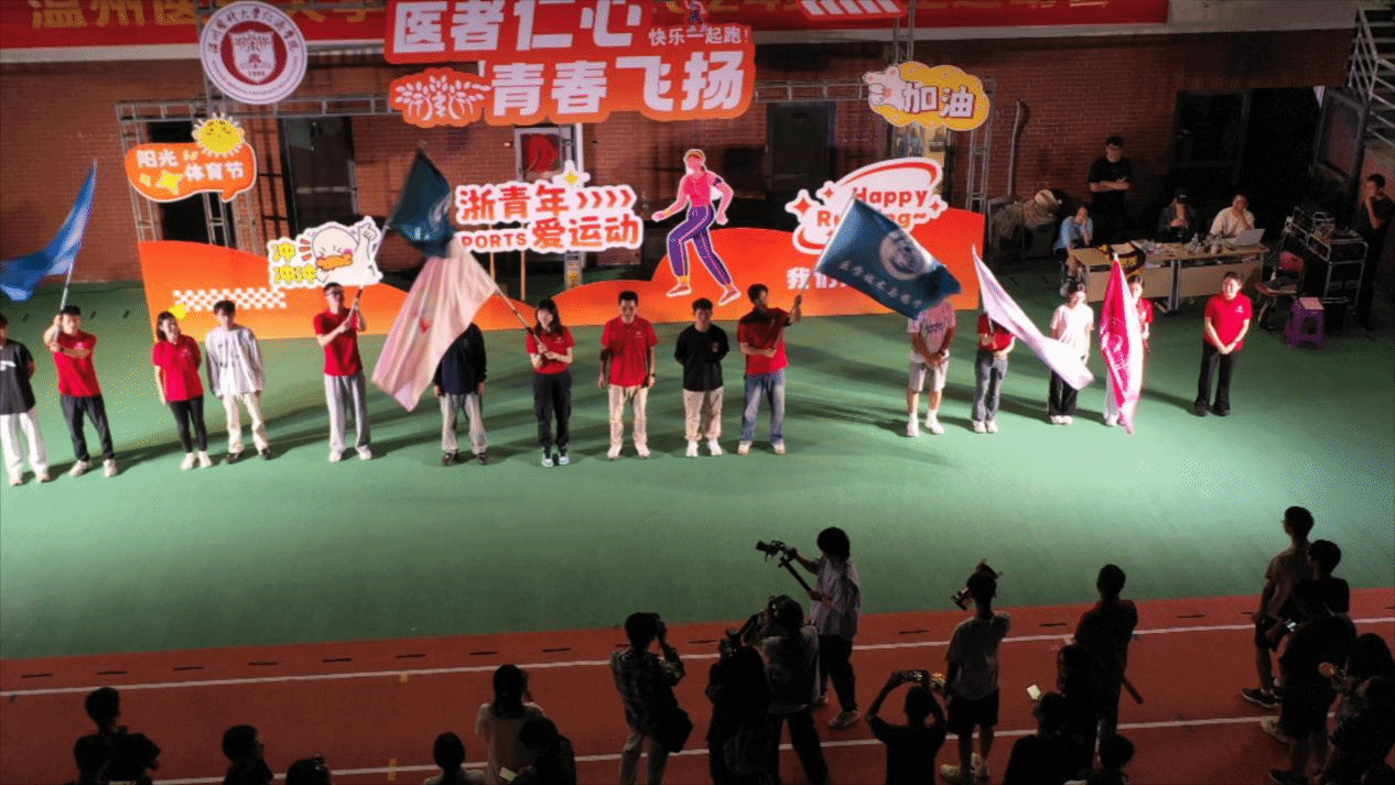 授旗仪式上,张立康和学院团委负责人将各系旗帜授予各系团总支书记,每一面旗帜都承载着对体育精神的传承和对未来的期许。各系团总支书记挥动旗帜,激励着每一位参与者在夜跑中展现出自己的风采。