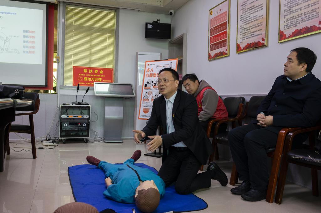 急救培训现场,由来自安徽医科大学的汪思应教授为现场志愿者和居民们讲述相关的急救知识,同时通过结合身边的真实案例,为大家讲解正确拨打120急救电话的注意事项、异物梗阻和心肺复苏术等重要急救措施。同时,汪思应教授与志愿者们共同合作,通过现场示范教学的方式,演习心肺复苏术以及AED的正确操作,把急救要领、操作细节传授给现场人员,并用互动的方式向大家讲授如何最有效地利用“黄金救命时间”,让大家学习并掌握相关急救技能。志愿者们通过本次急救培训,也增强了自身的急救技能水平,为后续的志愿服务活动奠定了基础。