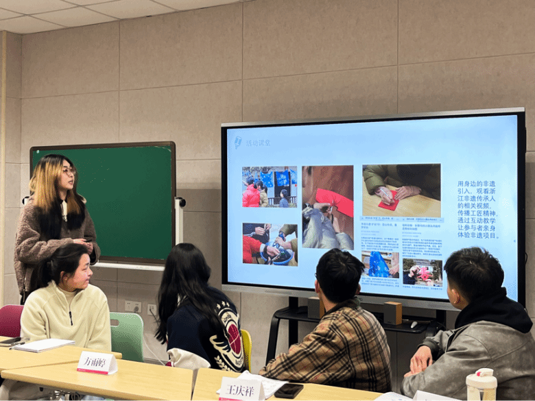 今年寒假期间,青马班学员分成两个小组开展寒假社会实践,通过调研主题选定、问卷设计、实地走访及报告撰写,体验了社会调研全过程。本次课程伊始,两个社会调研小组的成果展示便成为全场瞩目的焦点。一组围绕“浙江非遗保护与传承”这一课题,采用实地考察、数据分析等多种手段,全方位揭示了浙江非遗文化的独特魅力与保护现状,并提出小组对非遗传承的思考。另一组则将视线聚焦于“枫桥经验”,通过案例研究、问卷调查及实地走访派出所对民警进行采访等方式,深入剖析这一基层社会治理典范在新时代的传承与发展轨迹,为构建和谐社会提出了小组建议。