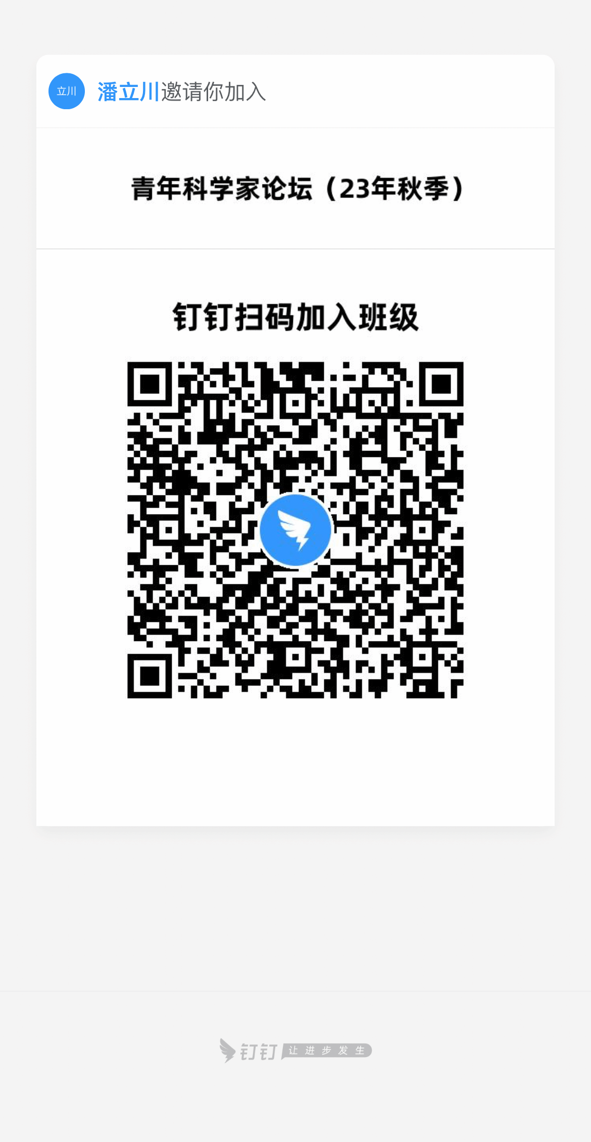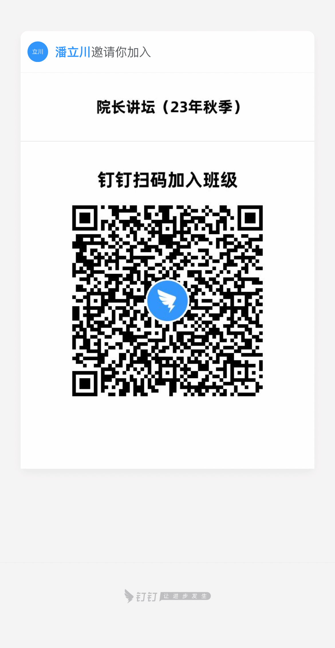 因选课学生来自不同年级专业,任课老师需建立课程联系班级群,以便任课教师在群中发布课程消息。选修《院长讲坛》和《青年科学家论坛》线下讲座课程的学生需钉钉扫码入群。(详见附件2)