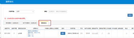 2022-2023学年第二学期重修课程采取网上报名的方式,具体安排如下: