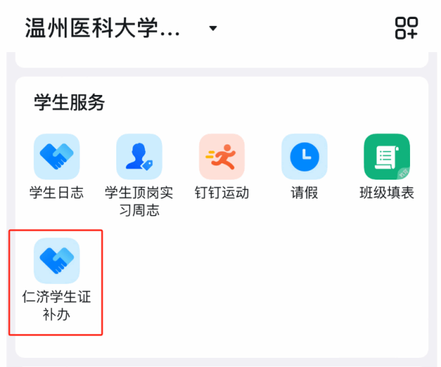 打开fb体育登录入口·(中国)官方网站钉钉工作台—学生服务—仁济学生证补办。